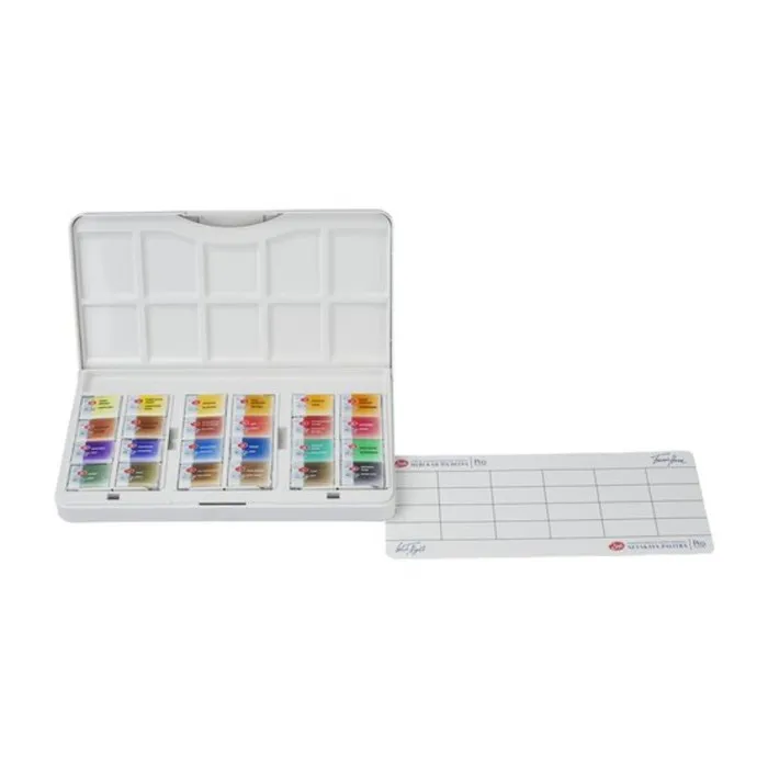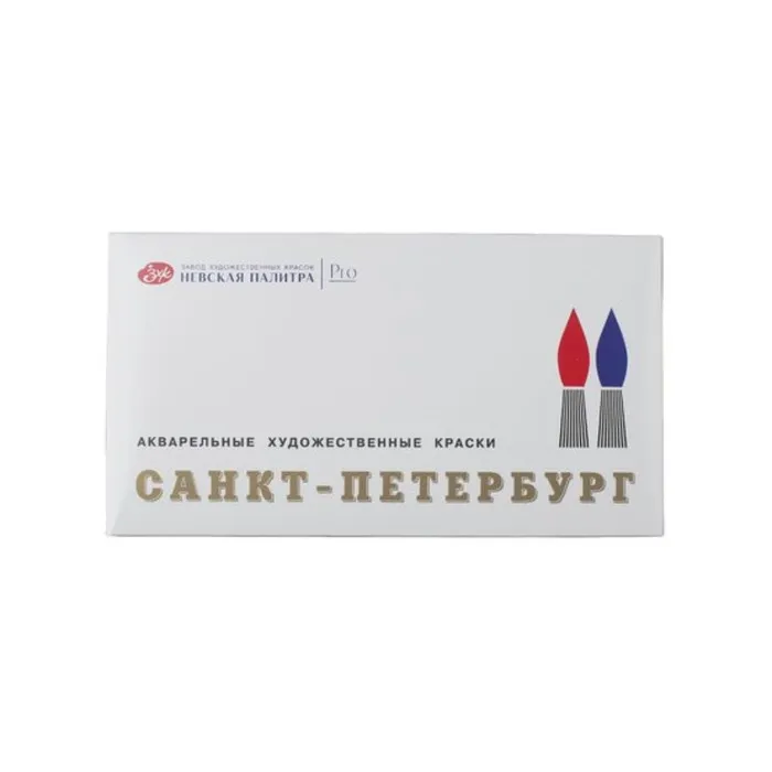 В состав классического набора "Санкт-Петербург" входят художественные акварельные краски "Белые ночи". Акварель профессиональной серии представляют собой тонкодисперсные суспензии пигментов и наполнителей в связующем, в состав которого входит водный раствор растительного клея – гуммиарабика. Все акварельные краски в палитре "Белые ночи" безопасны, сертифицированы и соответствуют стандартам ASTM D-4236. Высокая концентрация пигмента обеспечивают максимальную интенсивность цветового тона акварели. Насыщенность сохраняется даже при разбавлении большим количеством воды. Отличаются прозрачностью, что дает возможность художнику работать тонкими лессировками. Чистые цвета позволяют писать в смесях и получать богатое многообразие оттенков. Основная часть красок обладает высочайшим показателем светостойкости, что способствует сохранности работ свыше 100 лет. Все это обеспечивает их высокое качество и возможность использования в ответственных работах. Сбалансированная палитра набора "Белые ночи" состоит из 24 цветов, позволяющих решить множество творческих задач акварелиста. Набор представлен в пластиковом пенале со съемной палитрой. При необходимости в пустых нишах пенала можно разместить до 12 дополнительных цветов.