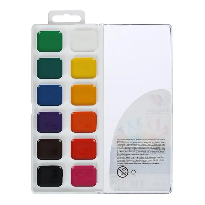 Краски акварельные медовые полусухие изготовлены на основе натуральных природных компонентов и высококачественных пигментов. Акварель предназначена для детского творчества и различных живописных работ.