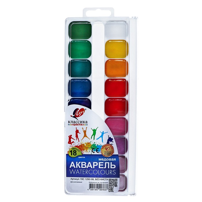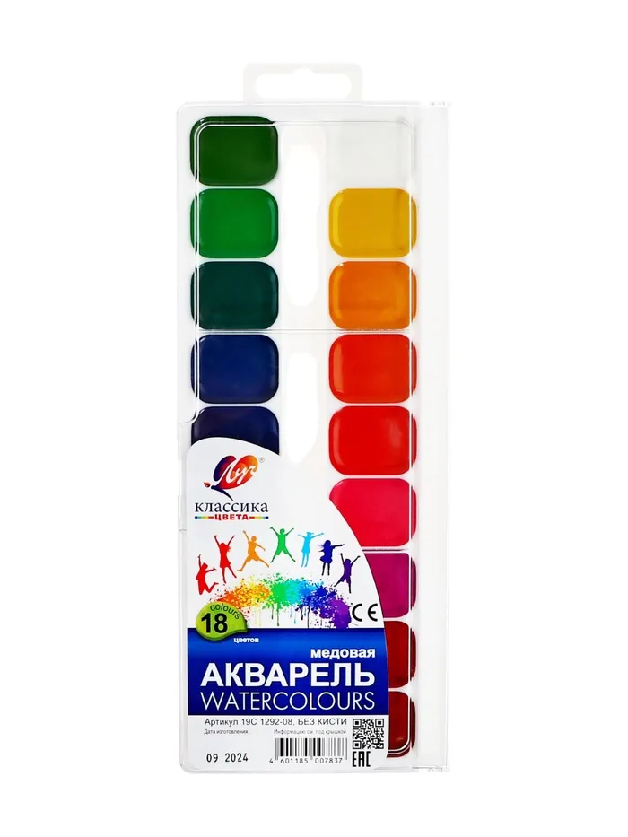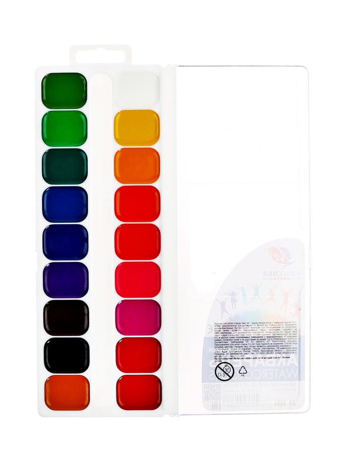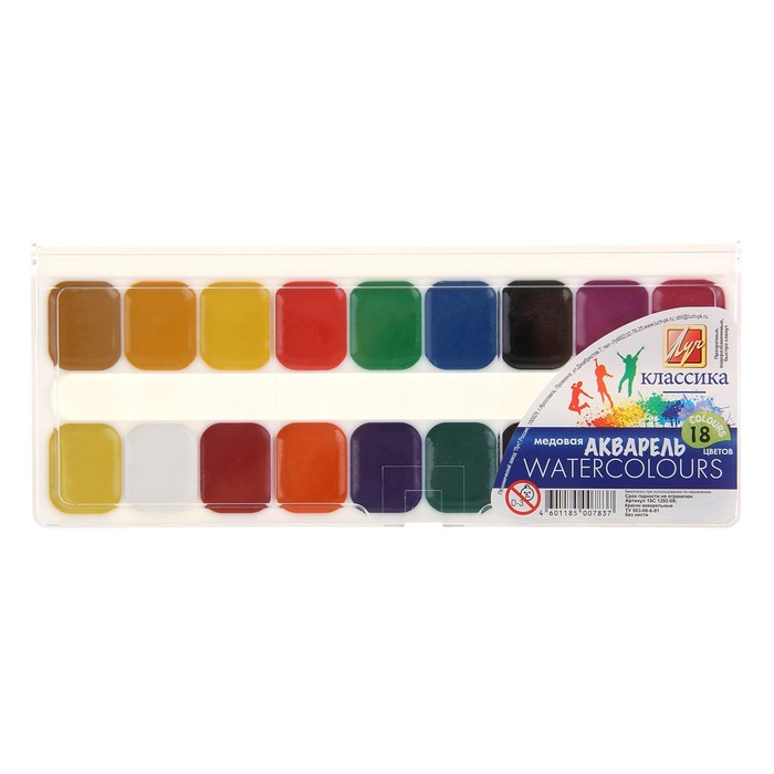 Краски акварельные медовые полусухие изготовлены на основе натуральных природных компонентов и высококачественных пигментов. Акварель предназначена для детского творчества и различных живописных работ.