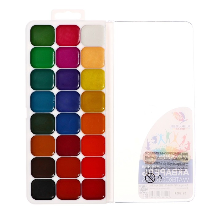 Краски акварельные медовые полусухие изготовлены на основе натуральных природных компонентов и высококачественных пигментов. Акварель предназначена для детского творчества и различных живописных работ.