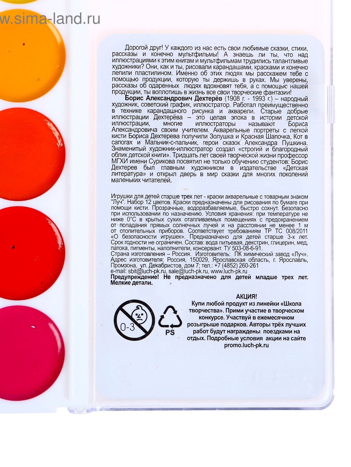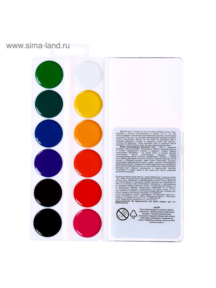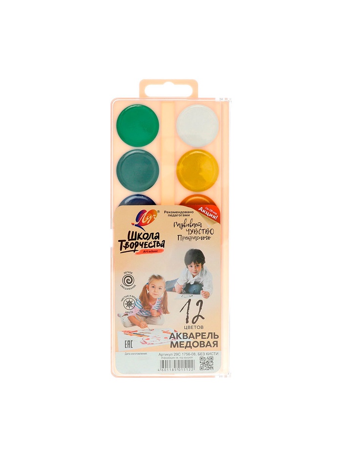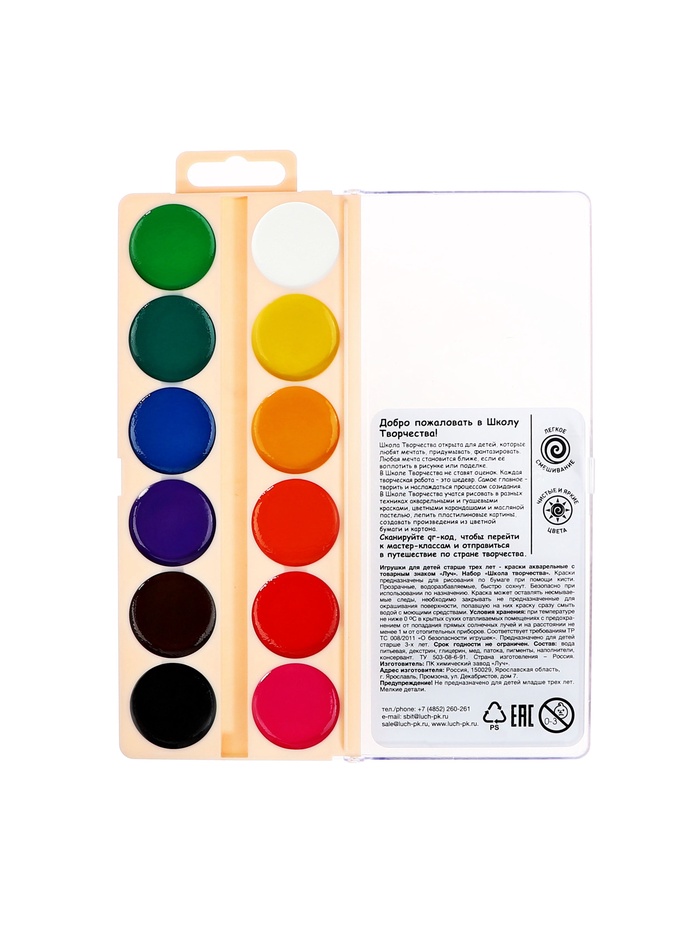 Акварель «Луч. Школа творчества», 12 цветов, без кисти — Характеристики