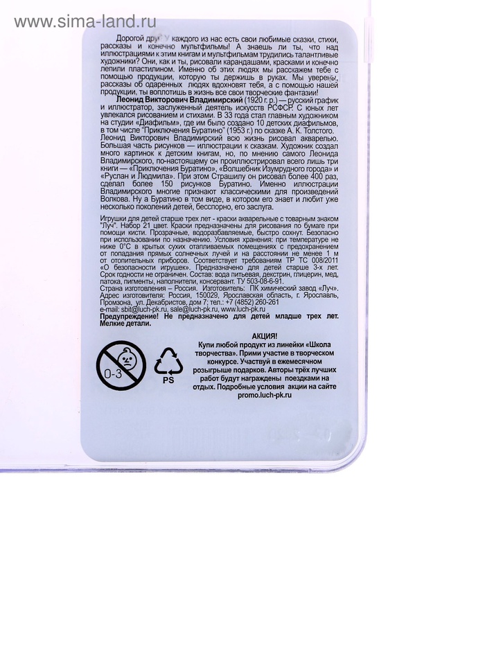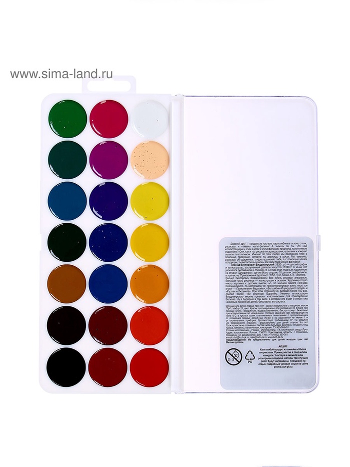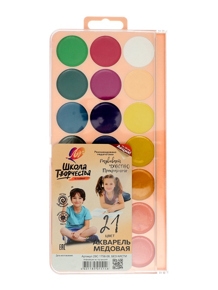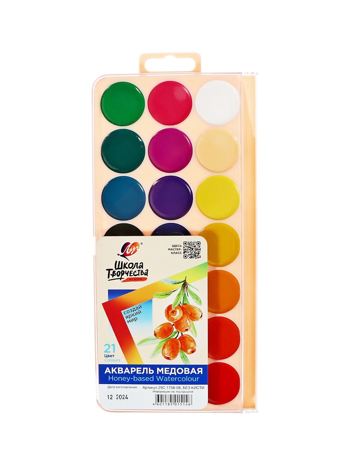 Акварель «Луч. Школа творчества», 21 цвет, без кисти — Характеристики