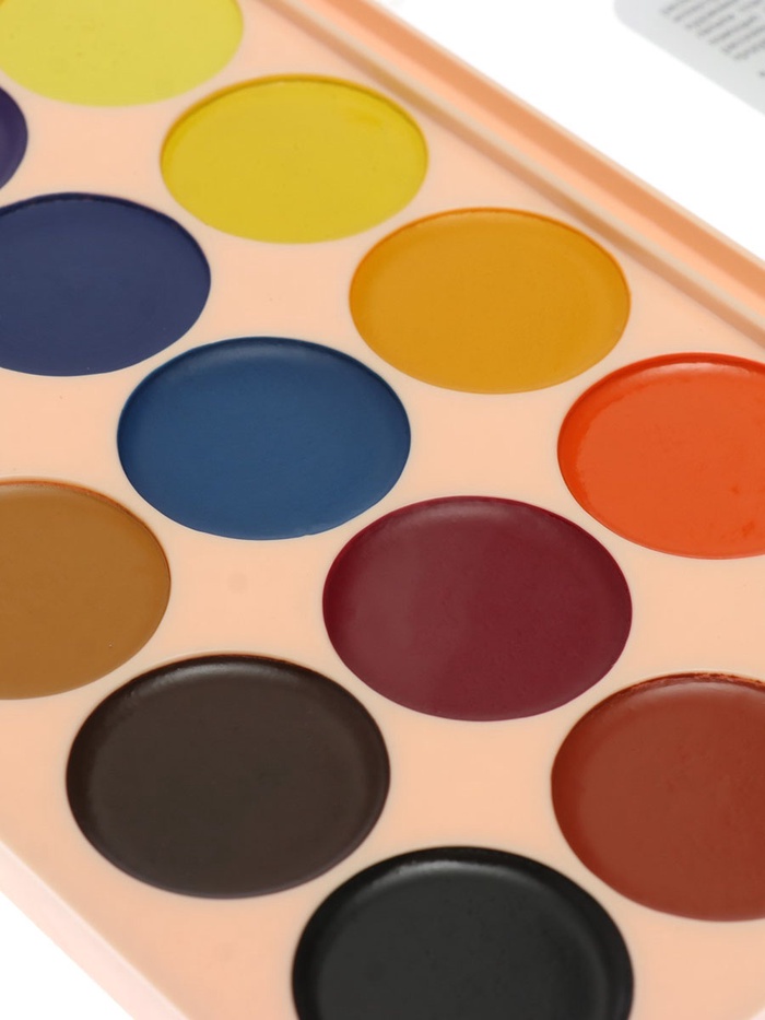 Медовая акварель изготовленная по классической рецептуре с яркими и чистыми цветами. Краска в подложке расположена группами: холодные-тёплые оттенки. Прекрасно размывается и разносится по поверхности бумаги, имея прозрачную основу без вкраплений. Краски смешиваются между собой, сохраняя насыщенность цвета. Краска легко смывается с рук и одежды.