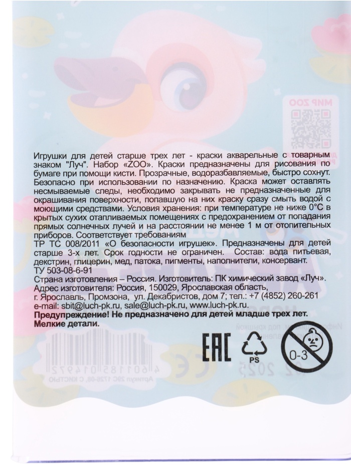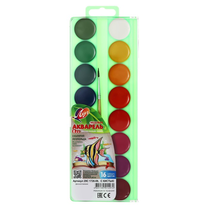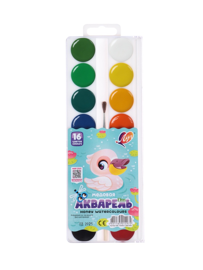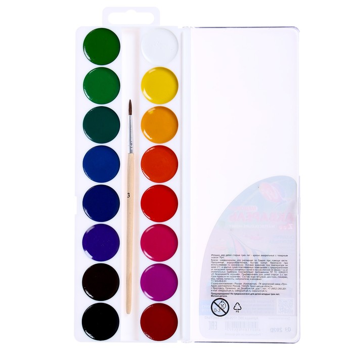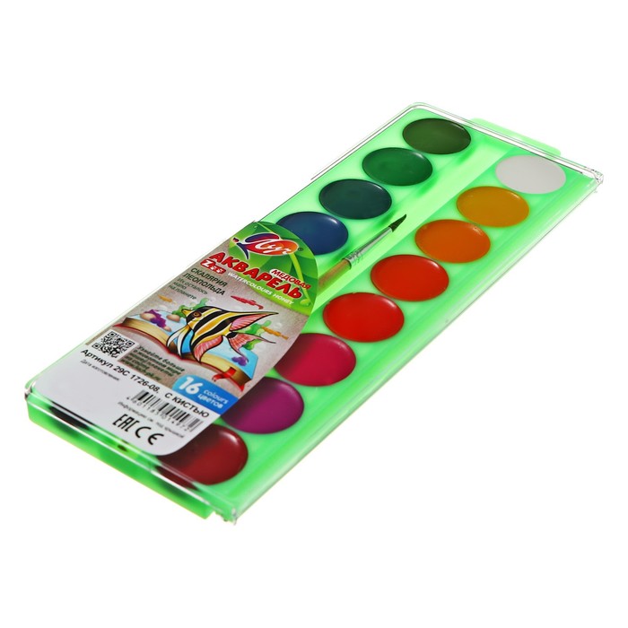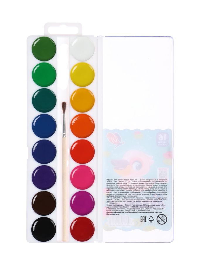 Акварель «Луч. ZOO», 16 цветов, с кистью — Характеристики