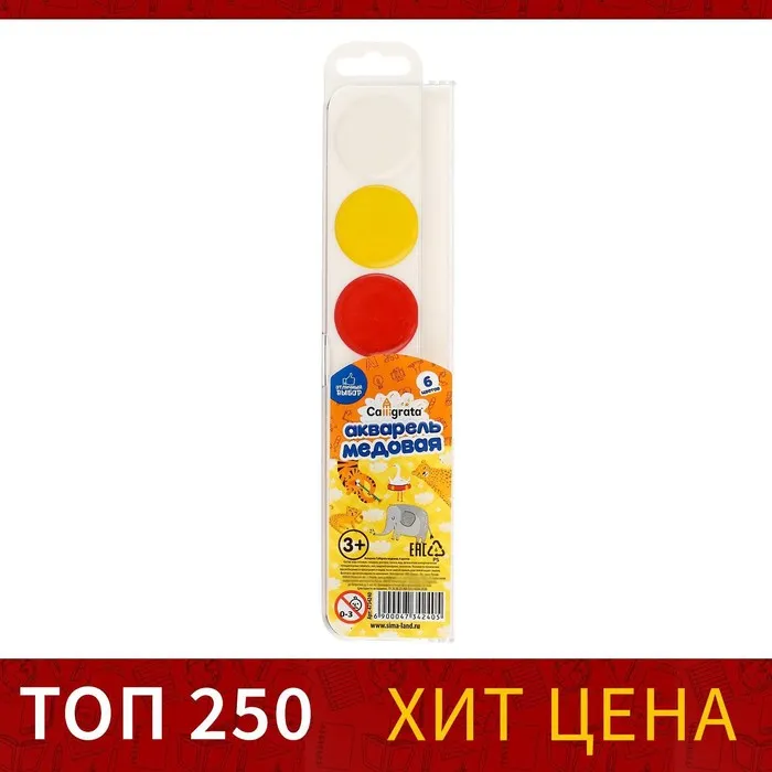 Медовая акварель Calligrata серии ""Отличный выбор"" разработана с учетом рекомендаций педагогов. Идеально подходит для занятий рисованием в детском саду, школе и дома. Яркие, чистые цвета развивают фантазию и интерес к творчеству. Акварель легко смывается с рук. 6 натуральных природных цветов акварели отлично смешиваются между собой и обеспечивают однородное окрашивание. Краски быстро высыхают и не портятся со временем. Безопасны для детей, нетоксичны. Выпускаются в пластиковом пенале с отделением для кисточки. Упаковка обладает компактными размерами и легким весом.