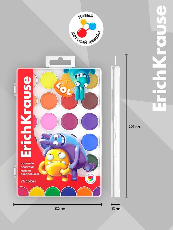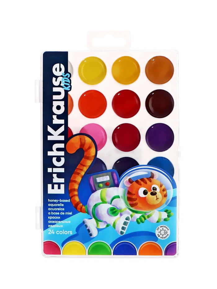 Акварельные краски ErichKrause с УФ защитой яркости. Яркие цвета легко смешиваются и сочетаются между собой, равномерно ложатся на бумагу, не выгорают на солнце благодаря УФ защите. Яркий эксклюзивный авторский дизайн выполнен в акварельной технике и нанесен на упаковку по технологии термопечати, не имеющей аналогов в России среди других производителей красок. Эта технология дает уверенность в оригинальности товара и защищает от подделок.