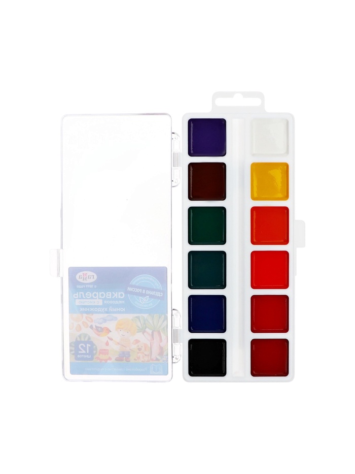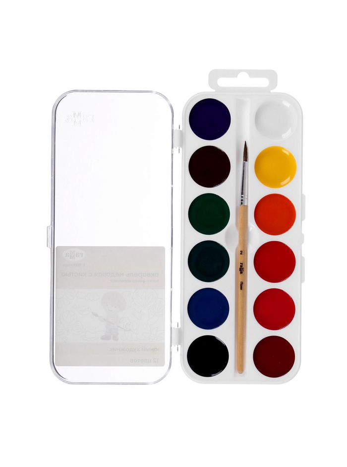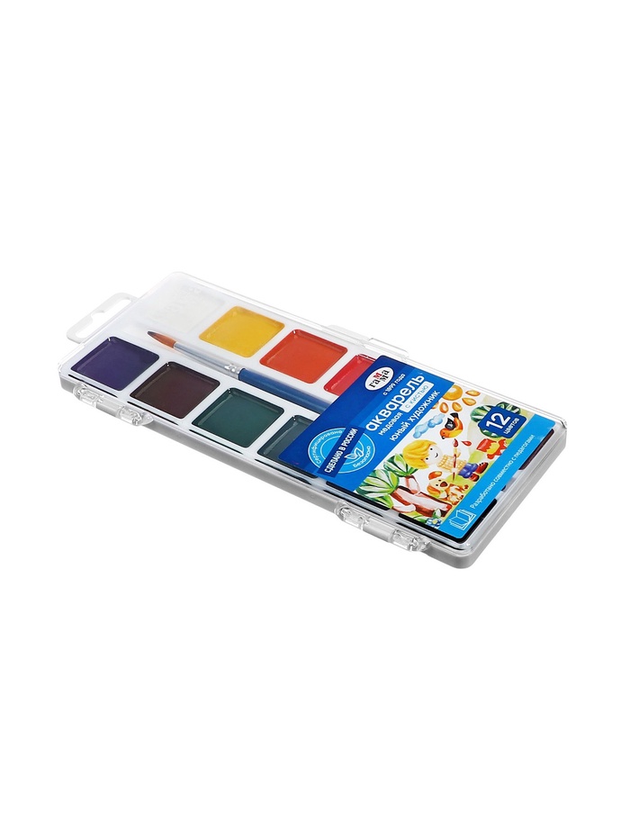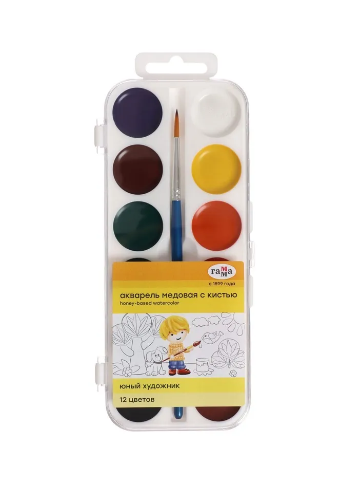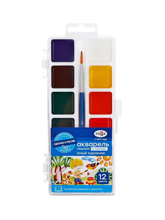 Акварель медовая «Гамма. Юный художник», 12 цветов, с кистью, пластик — Характеристики