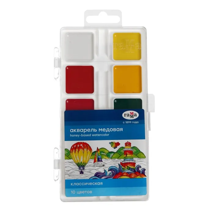 Акварель медовая «Гамма. Классическая», 10 цветов, без кисти, пластик — Характеристики