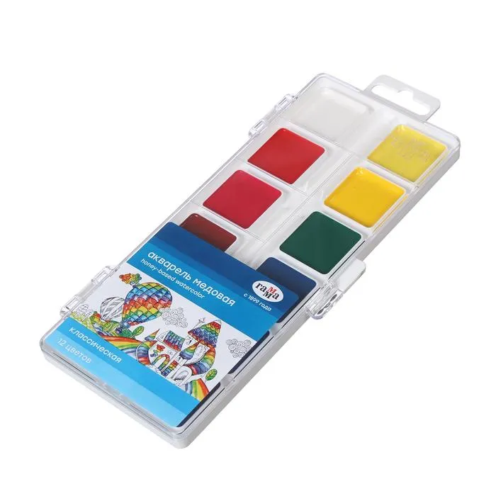 Медовая акварель детей от 7 лет, которые уже чувствуют себя взрослыми и хотят сами выбирать материалы для творчества. Благодаря качественному прозрачному связующему цвета акварели яркие, чистые и насыщенные. Краски расположены на одной подложке, как на палитре настоящего художника.