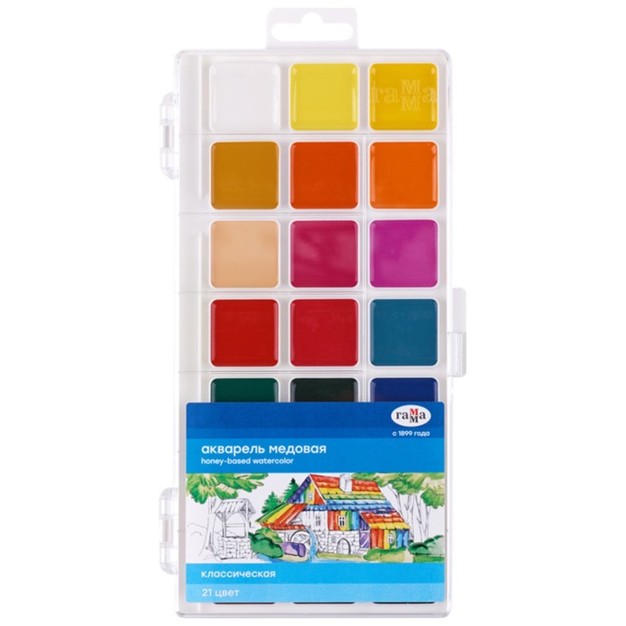 Медовая акварель детей от 7 лет, которые уже чувствуют себя взрослыми и хотят сами выбирать материалы для творчества. Благодаря качественному прозрачному связующему цвета акварели яркие, чистые и насыщенные. Краски расположены на одной подложке, как на палитре настоящего художника.