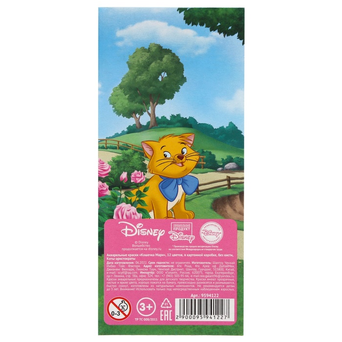 Акварель медовая «Кошечка Мари», 12 цветов, в картонной коробке, без кисти — Характеристики