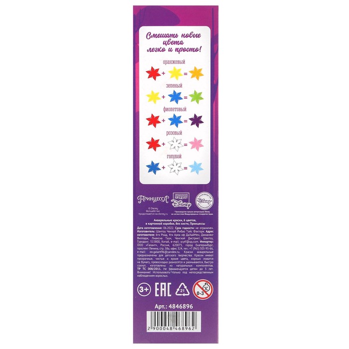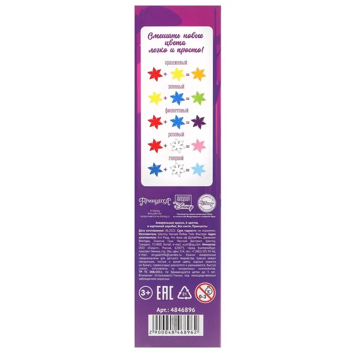 Акварель медовая «Принцессы», 6 цветов, в картонной коробке, без кисти — Характеристики