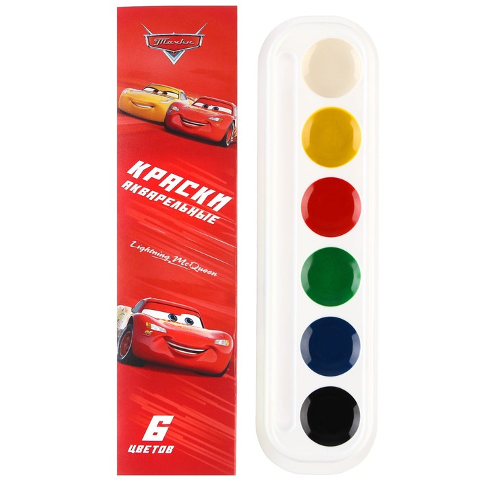 Акварель медовая «Тачки», 6 цветов в картонной коробке, без кисти — Характеристики