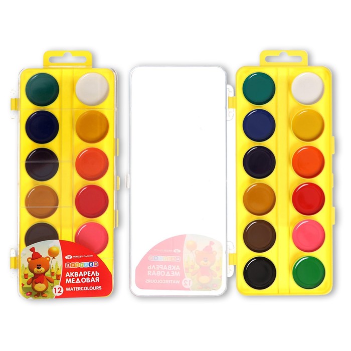Акварель медовая «ЗХК. Цветик», 12 цветов, в пластиковом пенале, без кисти
