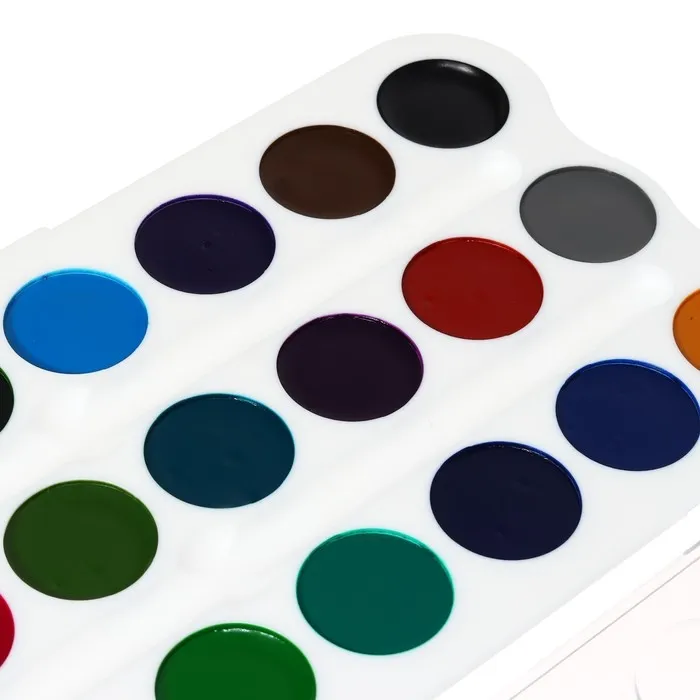 Краски легко берутся на кисть, смешиваются и разносятся по бумаге. Рисунок остается ярким даже после высыхания. Крышку пластиковой упаковки можно использовать в качестве палитры.