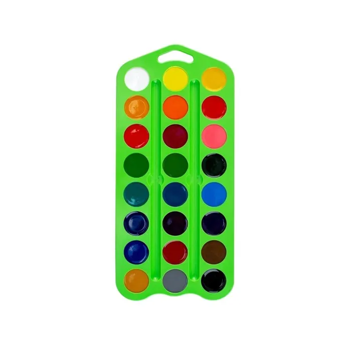 Краски легко берутся на кисть, смешиваются и разносятся по бумаге. Рисунок остается ярким даже после высыхания. Крышку пластиковой упаковки можно использовать в качестве палитры.