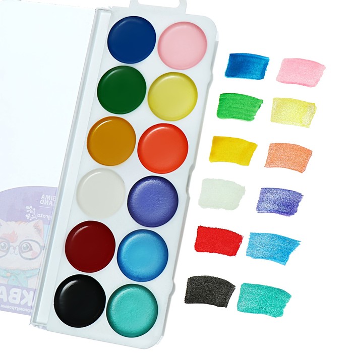 Набор акварельных красок, 12 цветов это сочетание классических и перламутровых оттенков в одной палитре. Краски упакованы в пластиковую упаковку, что делает их удобными для хранения и использования.