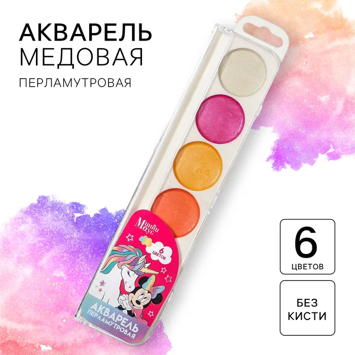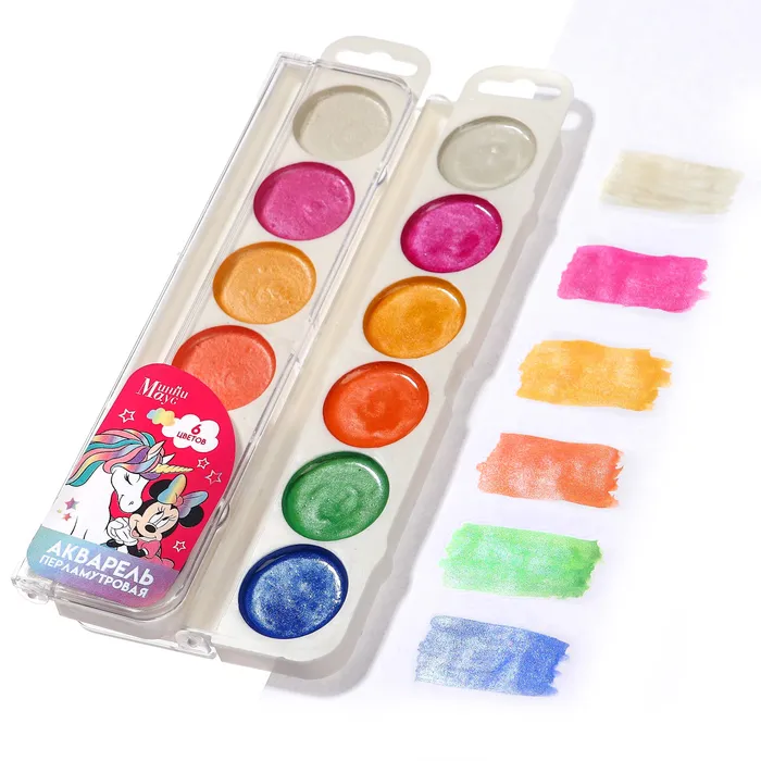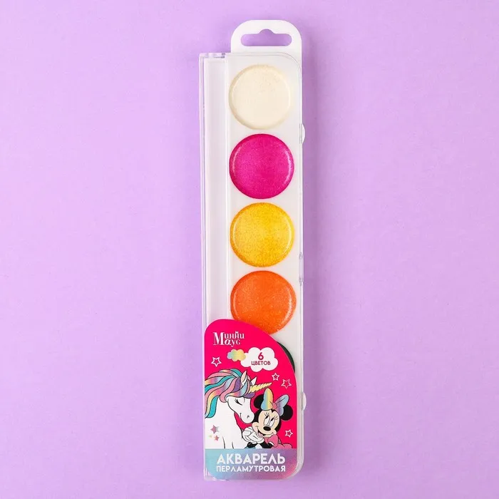 Акварель перламутровая «Минни и Единорог», 6 цветов, без кисти — Характеристики