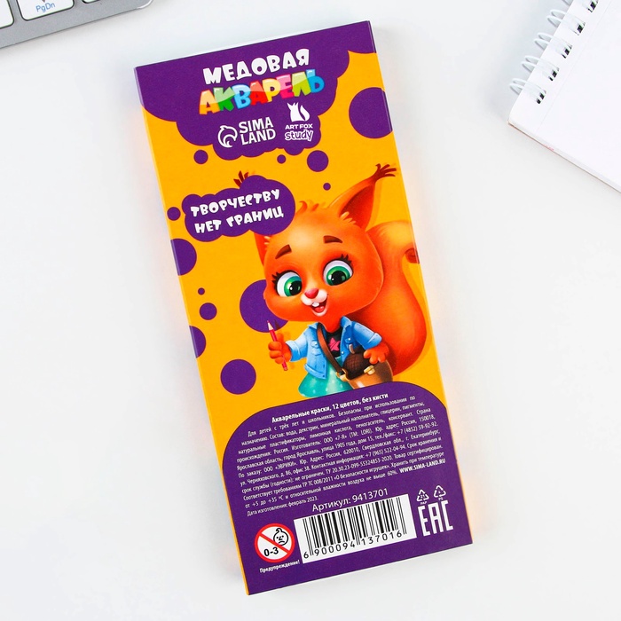 Акварельные краски медовые 12 цветов в картонной коробке, без кисти — Характеристики