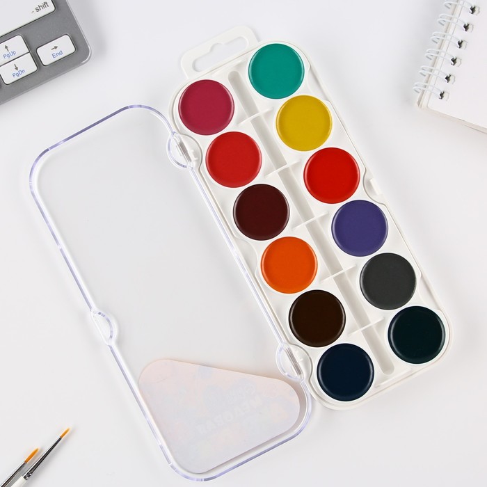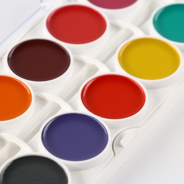 Набор акварельных красок для художественного творчества .Краски изготовлены по специальной технологии на основе минеральных наполнителей с добавлением натуральных пластификаторов .