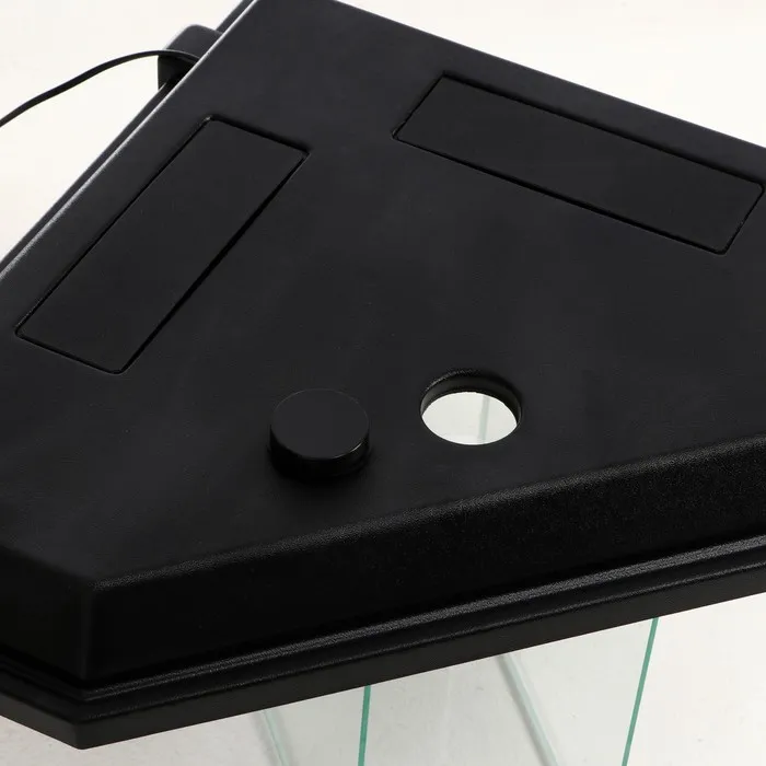 Аквариум "Дельта" угловой выполнен из высококачественного стекла, благодаря евро кромке имеет высокую защиту от трещин, сколов, что повышает степень безопасности при эксплуатации. Крышка надёжно защищает от пыли, оснащена патроном под лампу Е14, светодиодной лампой Е14 на 7 ватт и имеет защитный плафон. Самый большой плюс этого типа аквариума – высокая зрелищность при компактных размерах. Даже самый маленький угловой аквариум производит очень эффектное впечатление, потому что диагональная передняя стенка создает впечатление большего размера изделия, чем есть на самом деле. Указан номинальный объём аквариума.