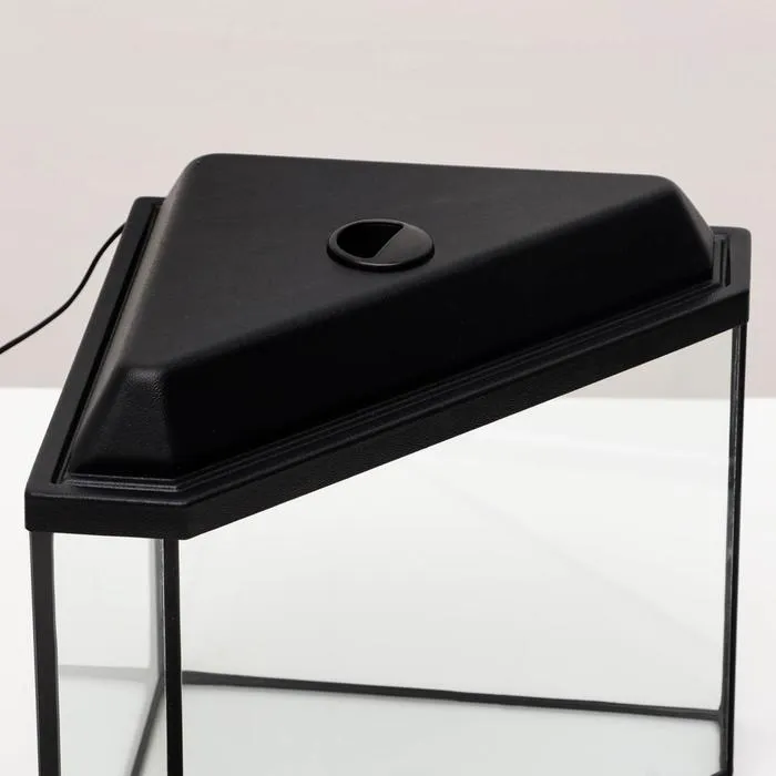 Аквариум "Дельта" угловой выполнен из высококачественного стекла, благодаря евро кромке имеет высокую защиту от трещин, сколов, что повышает степень безопасности при эксплуатации. Крышка надёжно защищает от пыли, оснащена патроном под лампу Е14, светодиодной лампой Е14 на 7 ватт и имеет защитный плафон. Самый большой плюс этого типа аквариума – высокая зрелищность при компактных размерах. Даже самый маленький угловой аквариум производит очень эффектное впечатление, потому что диагональная передняя стенка создает впечатление большего размера изделия, чем есть на самом деле. Указан номинальный объём аквариума.