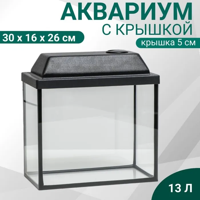 Аквариум Прямоугольный "Атолл" с крышкой, 13 литров, 30 х 16 х 26/31 см, чёрный — Характеристики