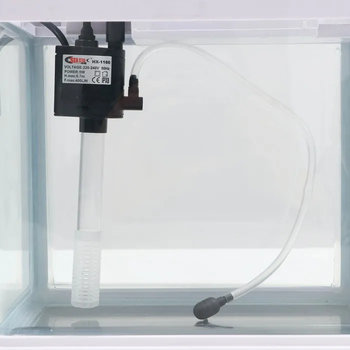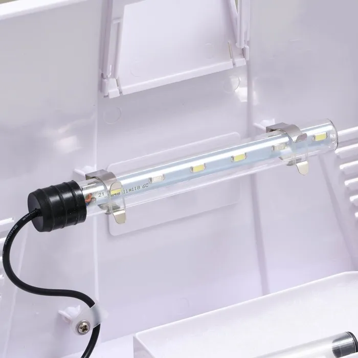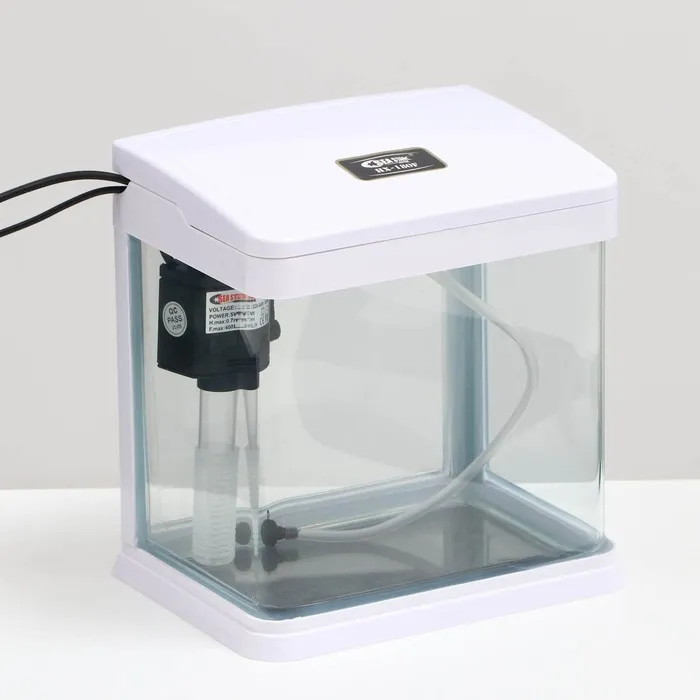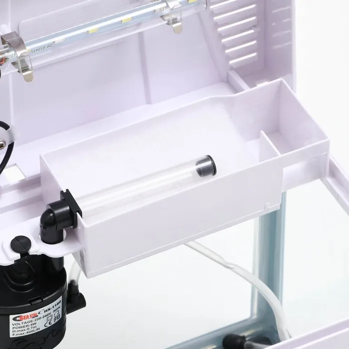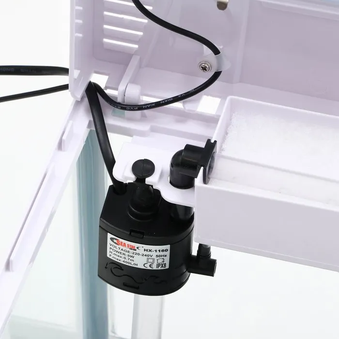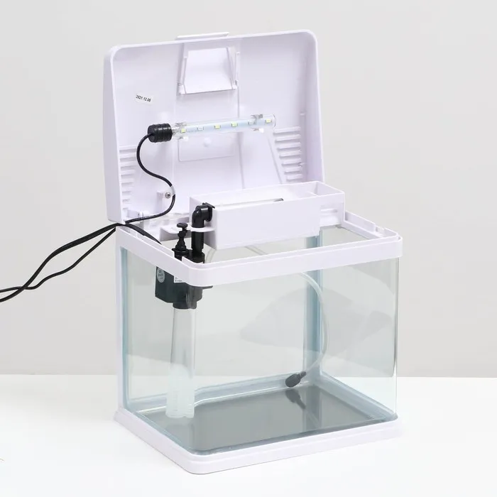Аквариум полностью готов к работе. Фильтр и светодиодная лампа встроены в крышку аквариума.