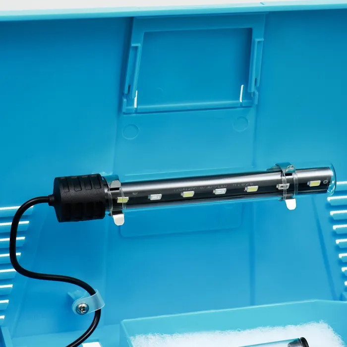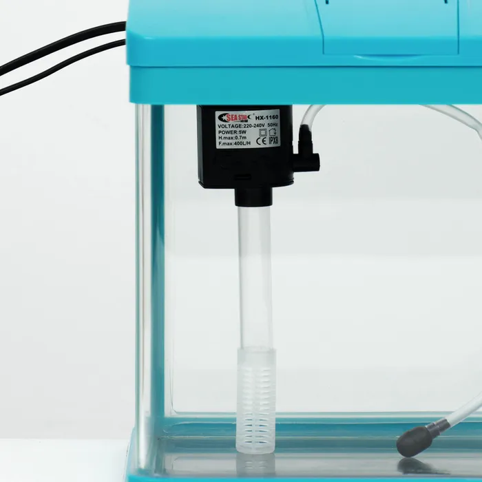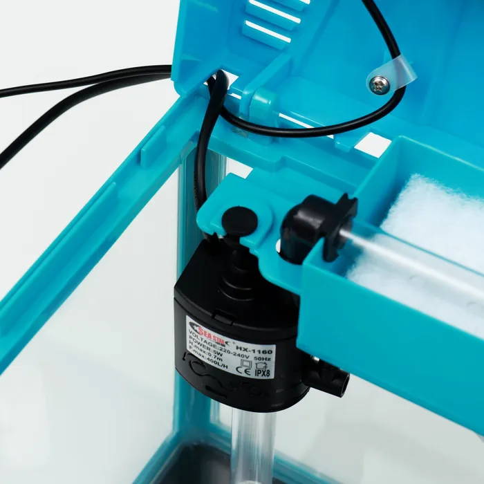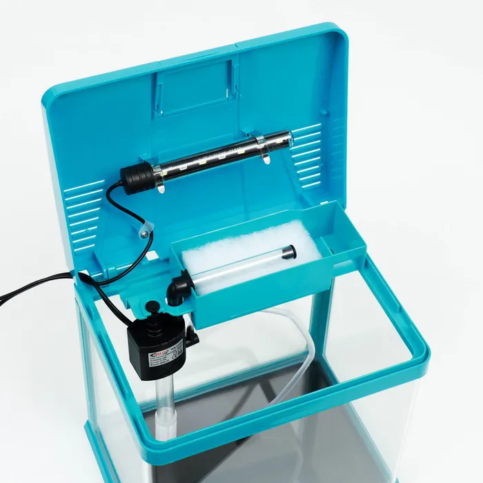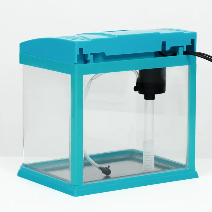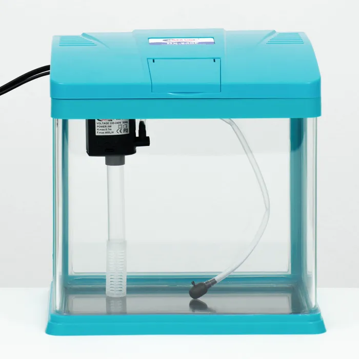 Аквариум 10 литров голубого цвета, в комплекте: LED-лампа, фильтр.