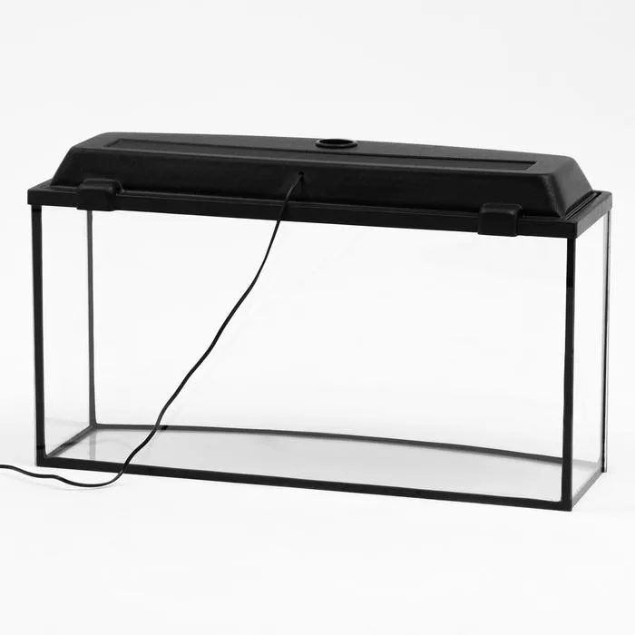 Аквариум "Телевизор" выполнен из высококачественного стекла, благодаря евро кромке имеет высокую защиту от трещин, сколов, что повышает степень безопасности при эксплуатации. Крышка надёжно защищает от пыли, оснащена двумя патронами под лампу Е14. Изящный аквариум отличается выгнутой передней стенкой, которая позволяет достигать эффекта дополнительного объема, что нестандартно дополнит интерьер. Указан номинальный объём аквариума.