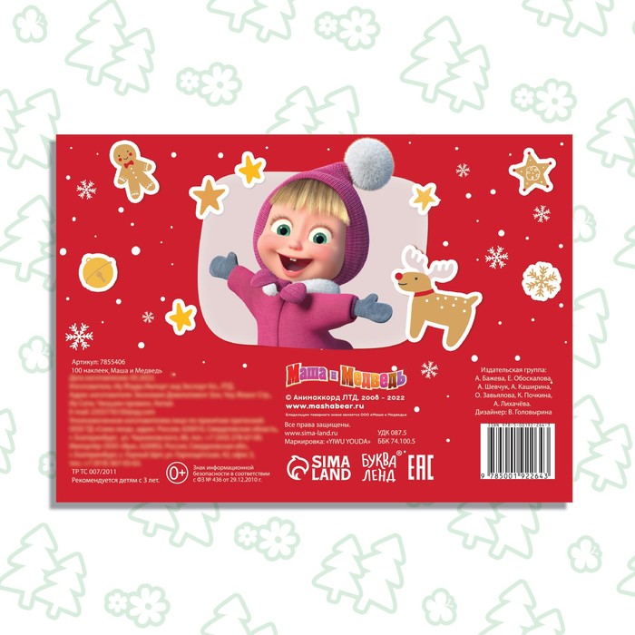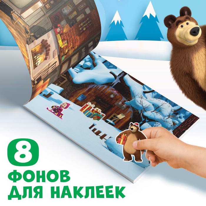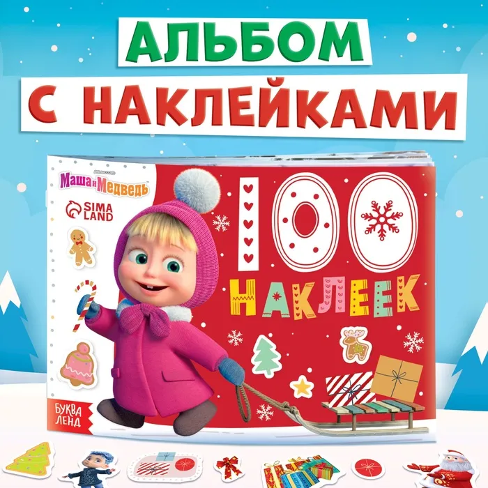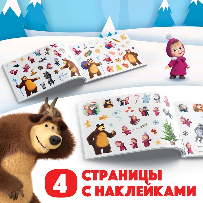 Альбом 100 наклеек «Новый год с Машей и Медведем», стикербук А5, 12 стр., Маша и Медведь — Характеристики