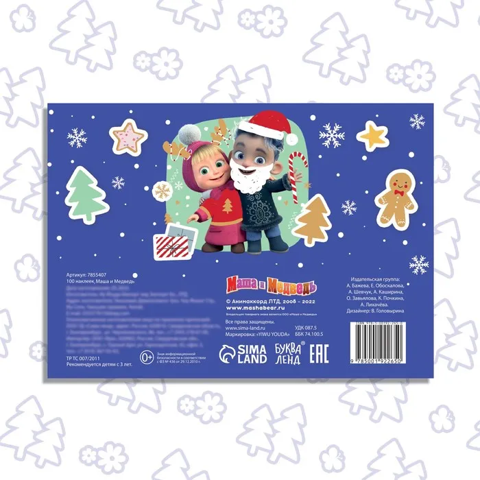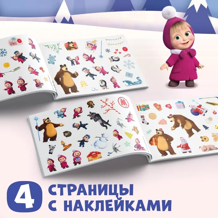 Альбом 100 наклеек «Встречаем Новый год с Машей и Медведем», стикербук А5, 12 стр., Маша и Медведь — Характеристики