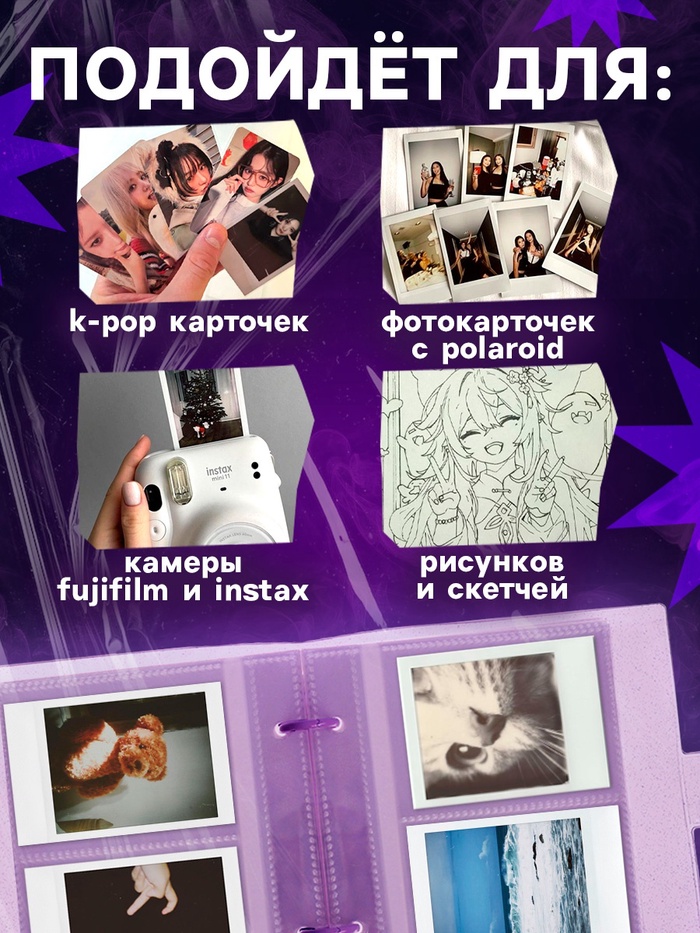 Альбом - биндер для карт, 25 страниц, на 100 карточек, голографические наклейки — Характеристики