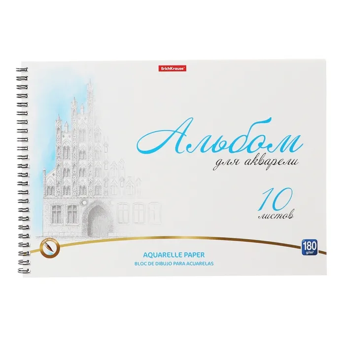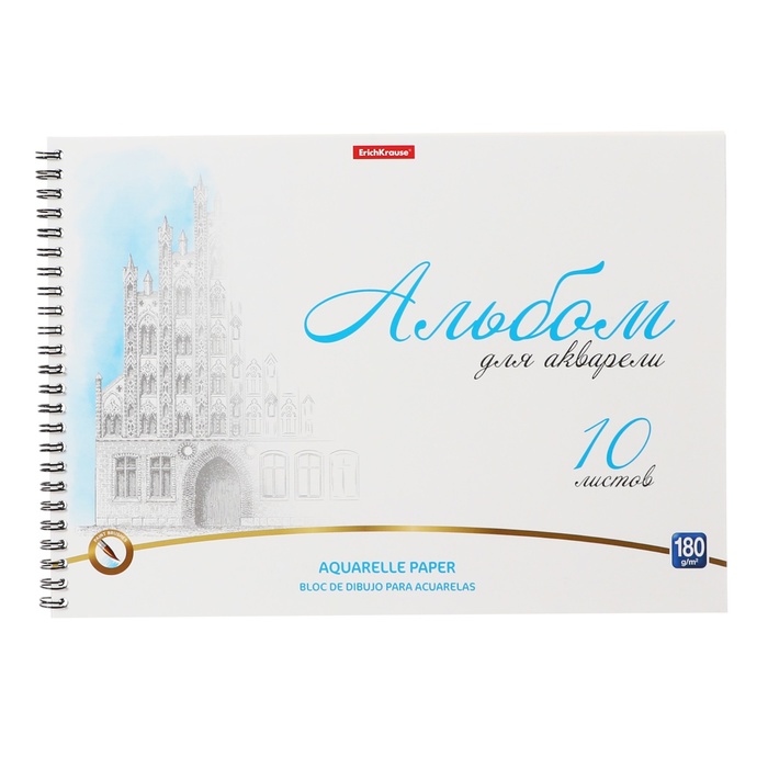 Альбом для акварели А4, 10 листов на спирали, ErichKrause Towers, блок 180 г/м², экстра белая, перфорация для отрыва, твёрдая подложка — Характеристики