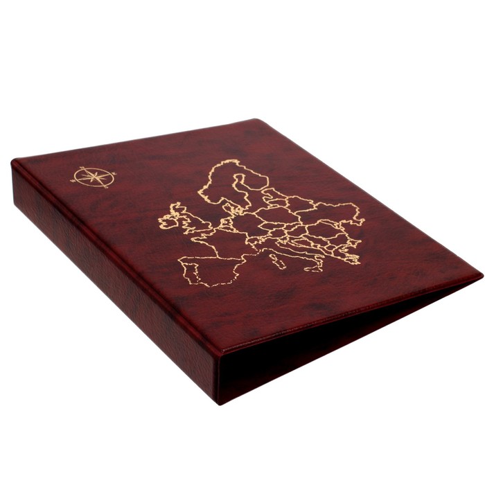 Альбом для монет на кольцах, формат Оптима 230 х 265 мм Calligrata "Карта", входит до 20 листов, обложка искусственная кожа, коричневый — Характеристики