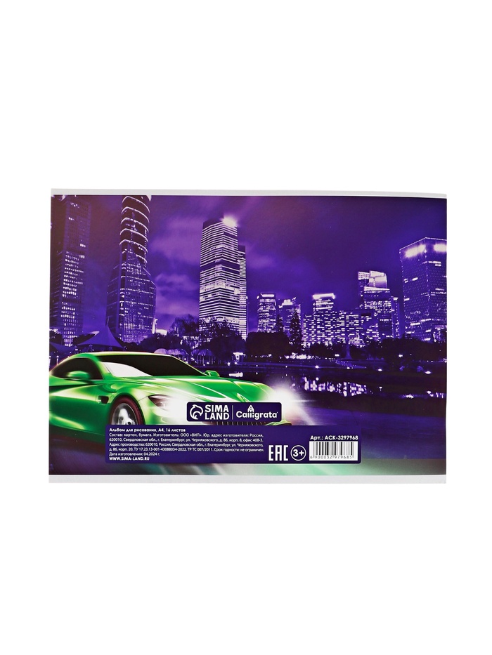 Альбом для рисования А4, 16 листов на скрепке «Авто», обложка мелованный картон, блок 100 г/м² — Характеристики