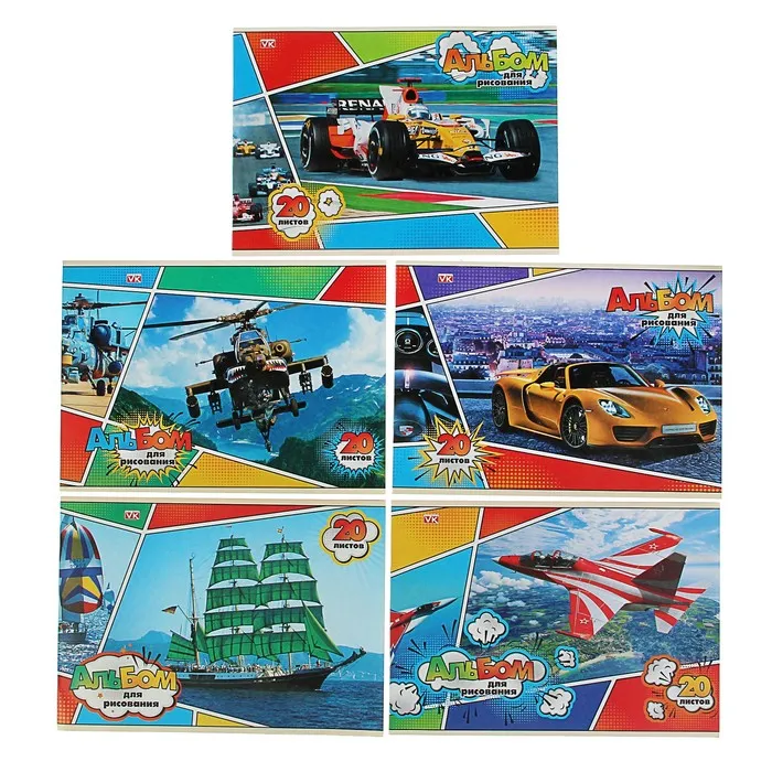Альбом для рисования А4, 20 листов, на скрепке, «Для мальчиков», обложка бумага, блок офсет 100 г/м², МИКС — Характеристики