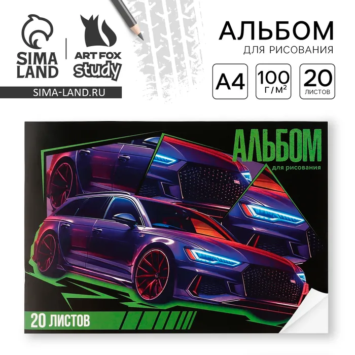 Альбом для рисования А4 20 листов на скрепке «Неоновая машина» — Характеристики
