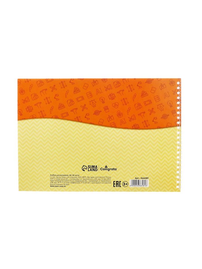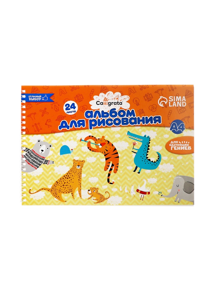 Альбом для рисования А4, 24 листа на гребне Calligrata, обложка мелованный картон, блок 100 г/м² — Характеристики
