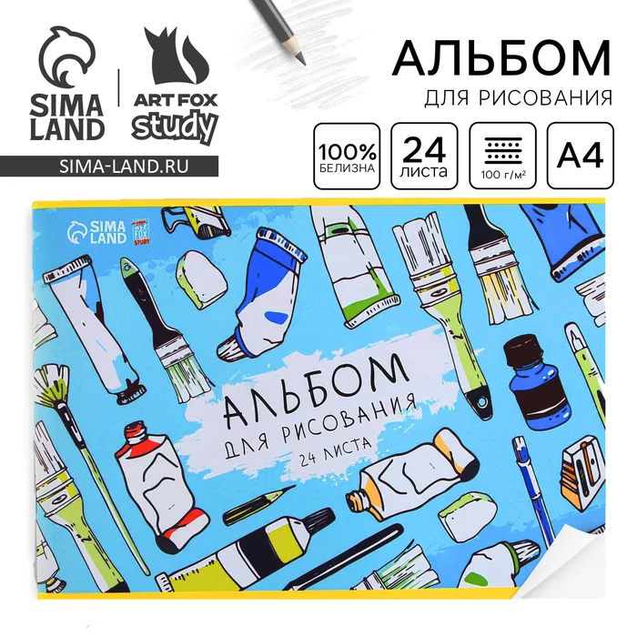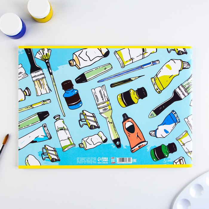 Альбом для рисования А4 24 листа на скрепке «Краски» обложка 160 г/м², бумага 100 г/м². — Характеристики