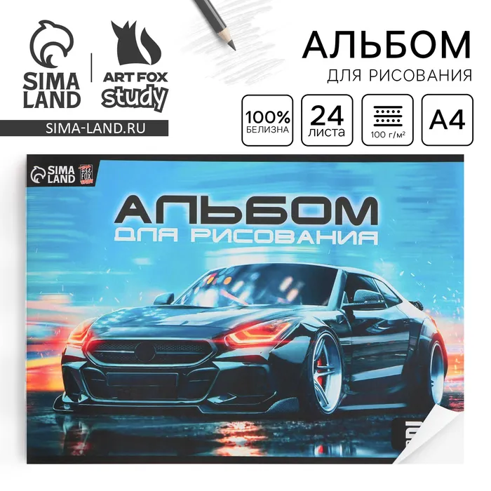 Альбом для рисования А4 24 листа на скрепке «Машина» обложка 160 г/м², бумага 100 г/м². — Характеристики