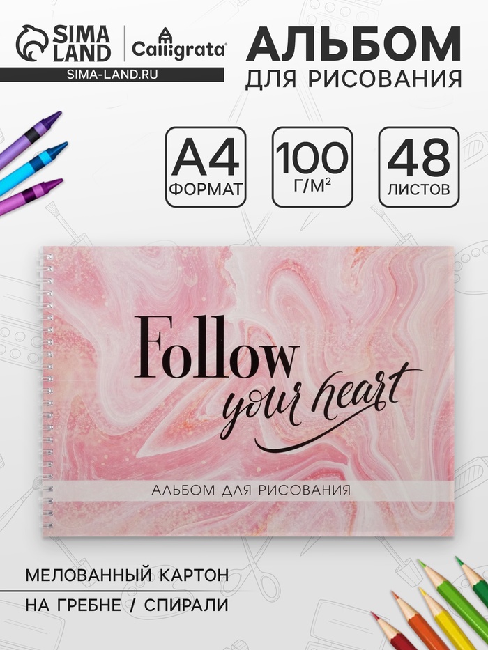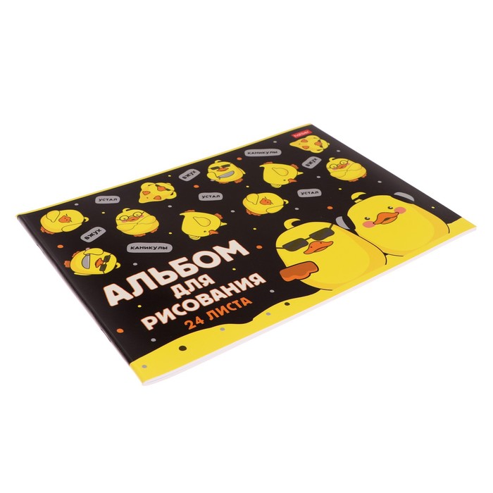 Альбом для рисования А4, 24 листа, на скрепке, «Мы-утята!», обложка мелованный картон, выборочный лак, блок 100 г/м², МИКС — Характеристики