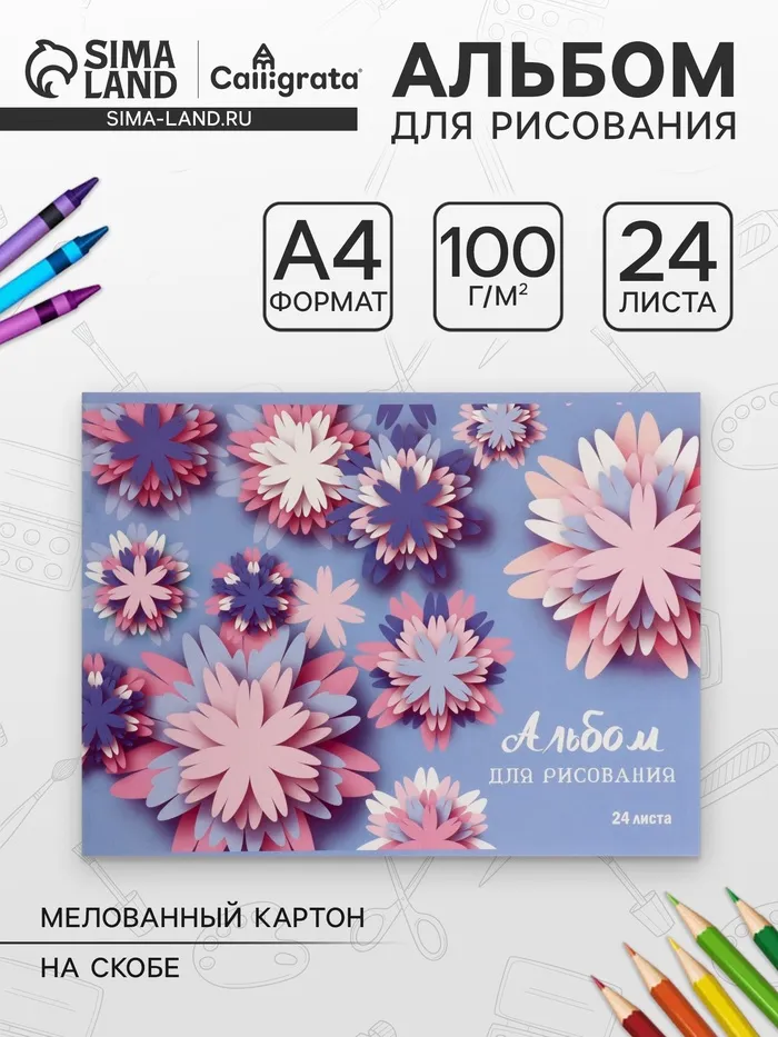 Альбом для рисования А4 - это не просто тетрадь для творчества, но и целый мир, который Вы можете создавать своими руками. Этот альбом станет вашим верным спутником в мире искусства, а также поможет воплотить самые смелые идеи и фантазии. Альбом - это незаменимая канцелярия, которая подойдёт как школьникам, любящим рисовать в больших объёмах на уроках и дома, так и взрослым, которые бывают не прочь отвлечься от ежедневной рутины и окунуться в мир творчества. Блок 100 г/м2.