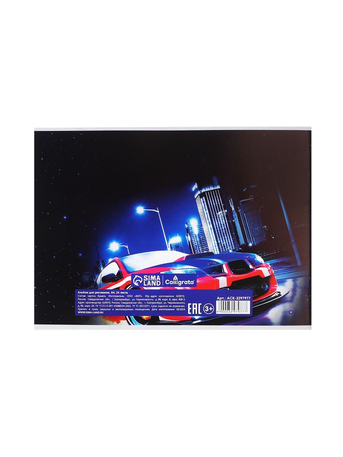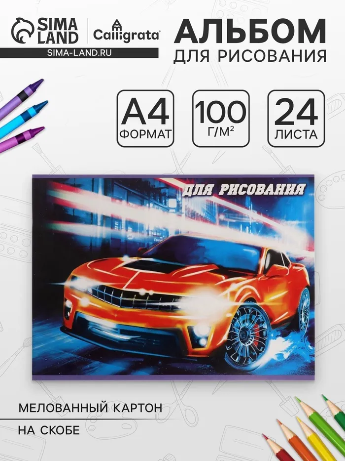 Альбом для рисования А4, 24 листа на скрепке «Тачки», обложка мелованный картон, внутренний блок офсет 100 г/м² — Характеристики