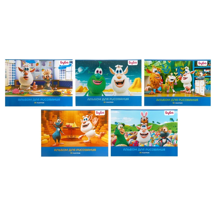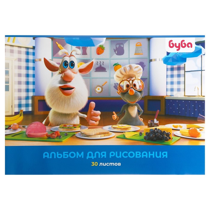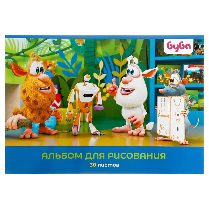 Альбом для рисования А4, 30 листов на скрепке "Буба", обложка мелованный картон, блок 100 г/м2, 5В, МИКС — Характеристики