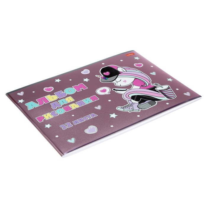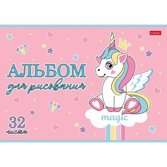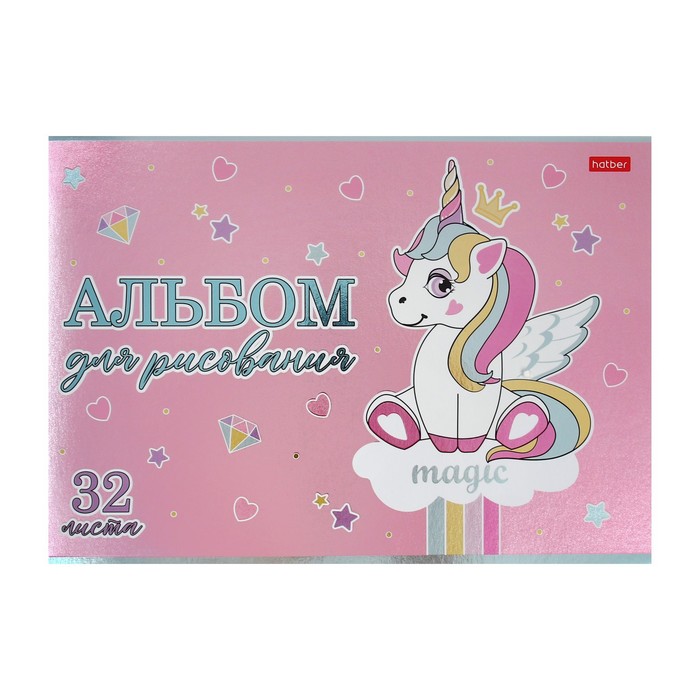 Альбом для рисования А4, 32 листа, "Мои волшебные миры", обложка металлизированный картон, выборочный лак, блок 100 г/м2, МИКС — Характеристики