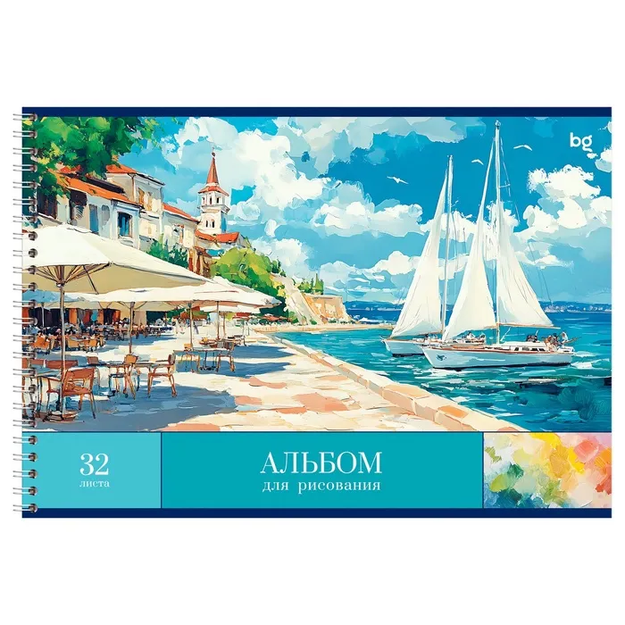 - Твердая картонная обложка: Обложка из плотного картона защищает рисунки от повреждений и придает альбому аккуратный вид. Яркий дизайн с пейзажами вдохновляет на творчество.