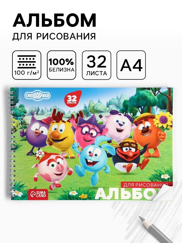 Альбом для рисования А4, 32 листа, на гребне «Смешарики» — Характеристики