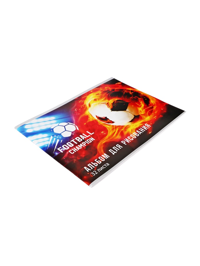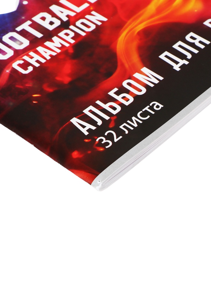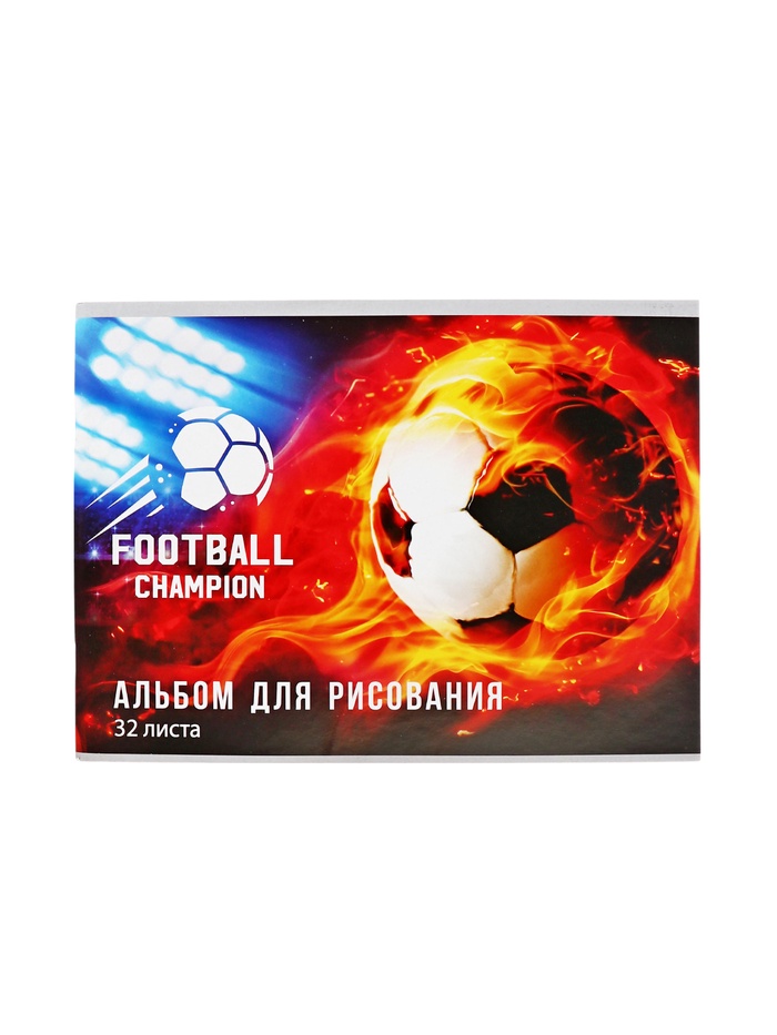 Альбом для рисования А4, 32 листа на скрепке «Футбол.Чемпион», обложка мелованная бумага 120 г/м², блок 100 г/м² — Характеристики