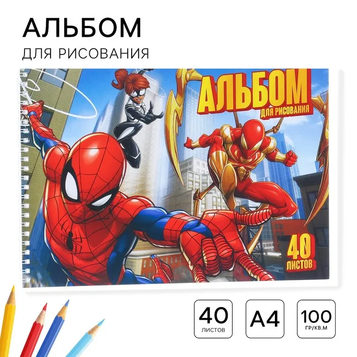 Альбом для рисования А4, 40 листов 100 г/м², на пружине, «Человек-паук» — Характеристики